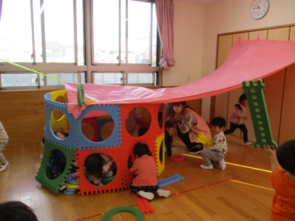 外はカンカン照り🌞猛暑日が続きましたが、お部屋でいっぱい遊んだり、テラスや日陰で水遊びを楽しみました!大きいクラスのお友達は様々な素材を使った遊びに夢中でした!