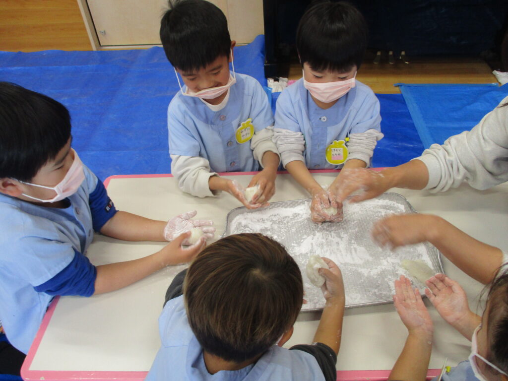 「丸めてみよう!!」「冷たいね」